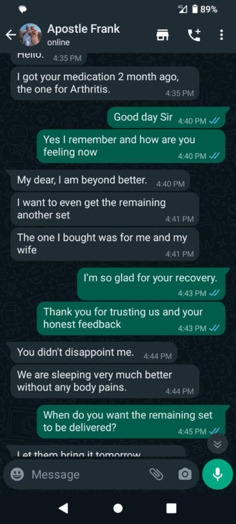 How about Apostle Frank, who was battling with severe joint pain and stiffness for 15 years? After using our solution for 30 days, he was able to resolve these issues.