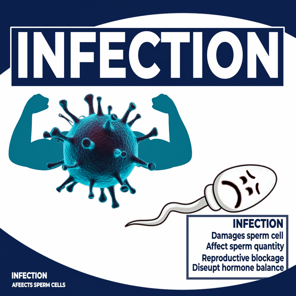 If you’ve had any infections, like an STI, it could mess with your sperm production or block the sperm from moving freely. It’s like a roadblock in your reproductive system.