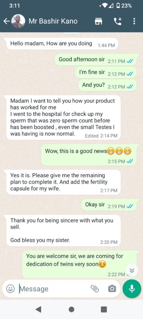 My name is Ahmed Balogun and I am one of the happiest person alive now because I have been experiencing low sperm count and infertility for almost 8 years and I have tried several medication that has failed to work for me rather than causing more harm which is what led to me having Weak Erection.. I was devastated because I can no longer give action in the other room which led to my wife to cheat on me and I couldn’t talk just because of my condition,, I was at the verge of taking my own life before a friend of mine Introduce a remedy for me to try, I wanted to disobey him first because of the various I have use which has failed to work for me but I had a second thought,.. So I gave it a try and the rest was history because right now I am a father of two and I now have the total control of my own home back..