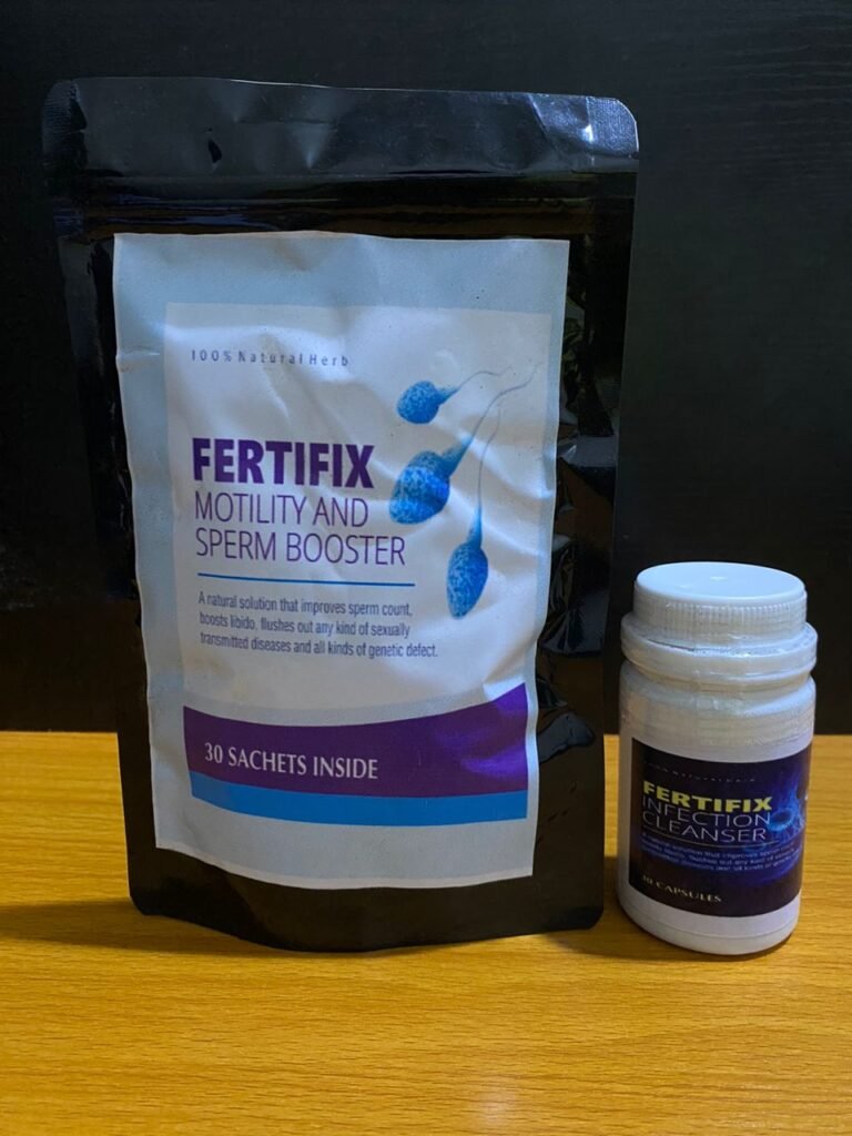 PACK A  FERTIFIX MOTILITY AND SPERM BOOSTER, cures any form of watery sperm, low sperm count, and improves fertility including Azoospermia aids sperm movement, improves erection, cures quick ejaculation and improves sperm speed.